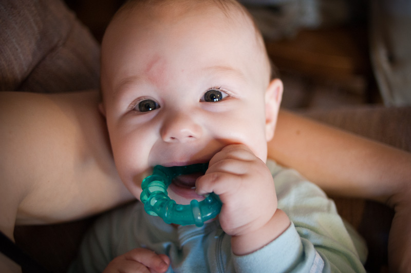 Yesterday we had a big mishap. Cameron was just playing in the living room, standing against the coffee table when he tumbled, going head first into the corner of our baseboard heaters. The heaters weren’t on (Dan has an aversion to warmth in the winter), but that didn’t prevent injury. Cameron had banged his forehead, right above his eye.